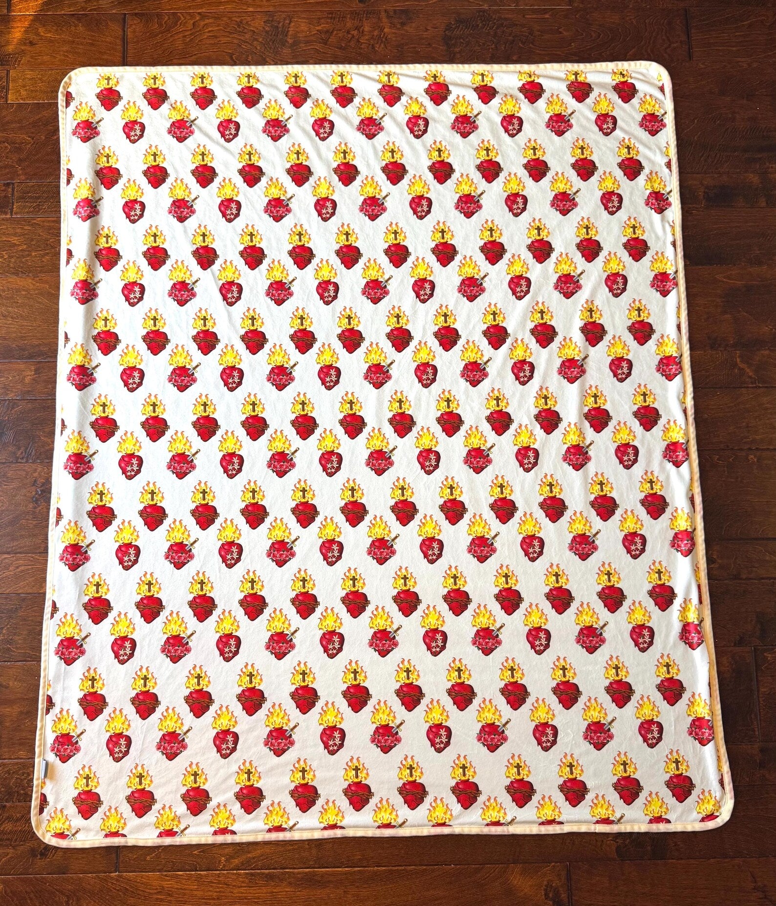 Seriously ya'll, they blanket is the best ever! This blanket is ultra soft material (same used in our baby lovie blankets) and covered with beautiful sacred heart of Jesus illustration On front and backside! Approx. 50x60" size.