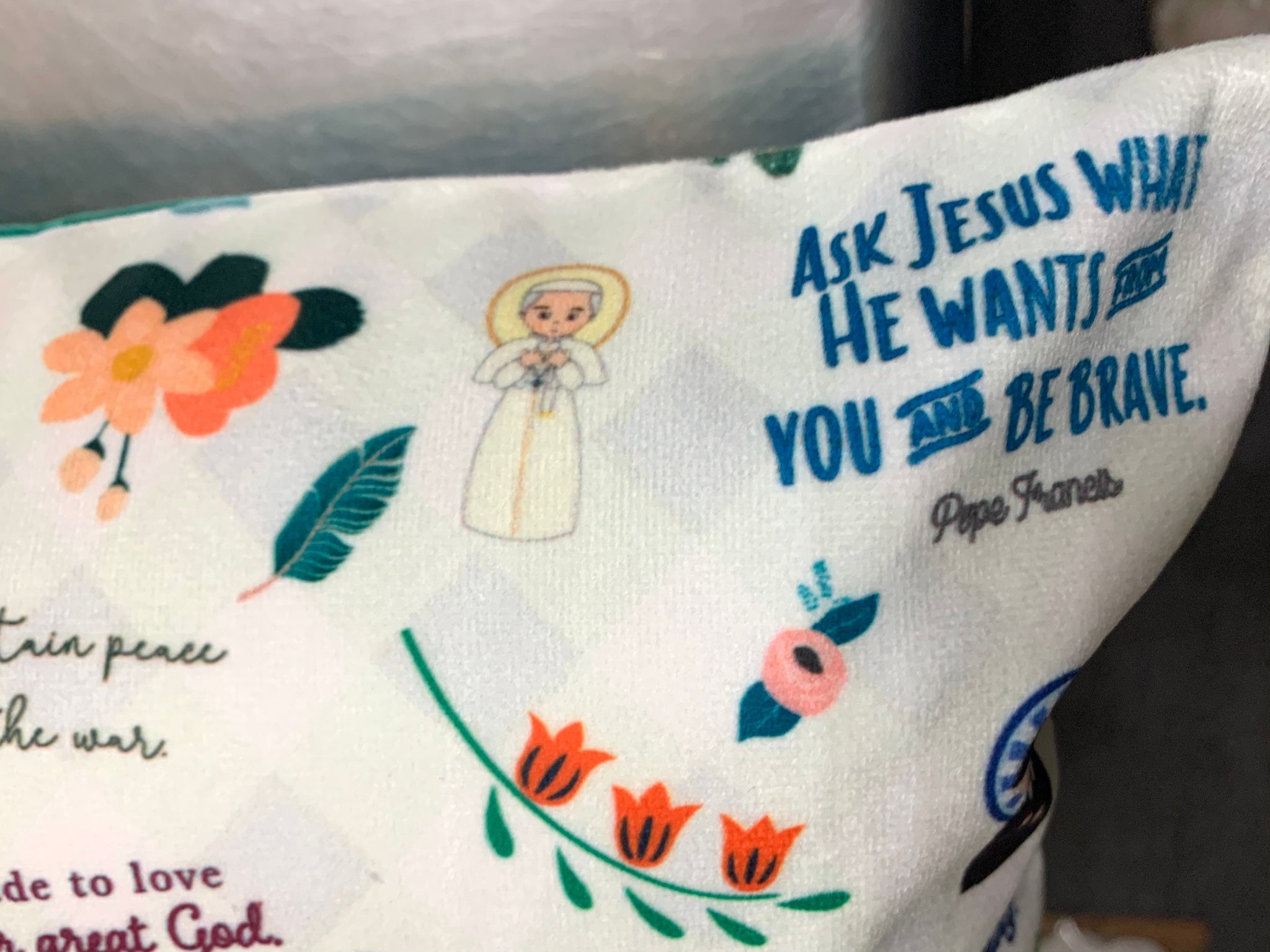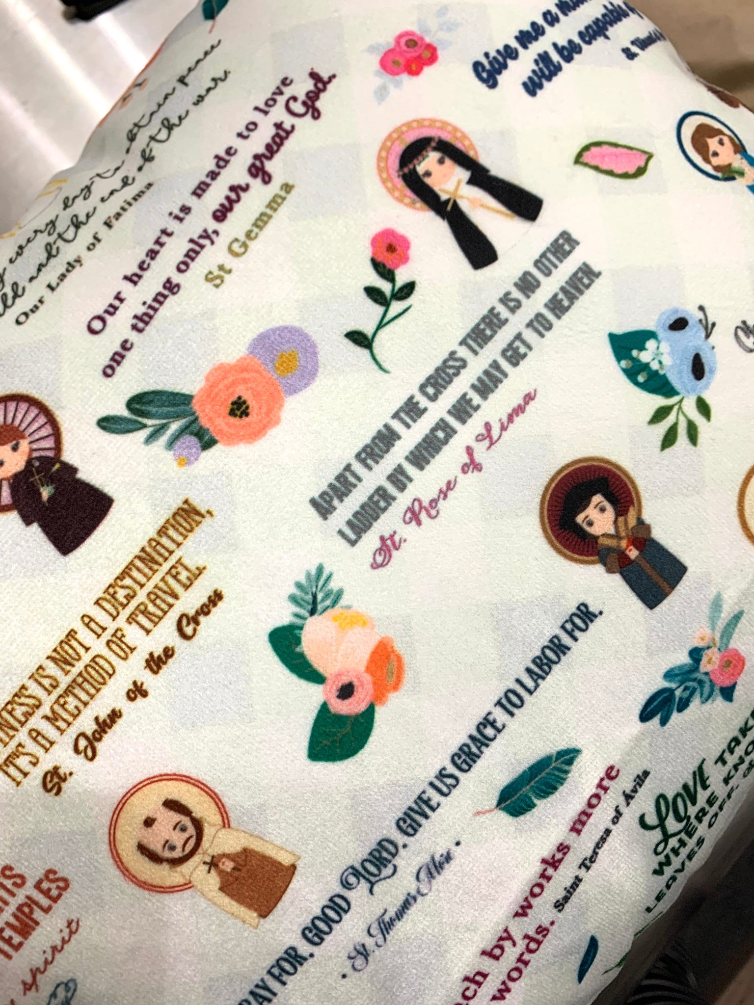 Catholic Saints pillow. Baptism Gift. Mother Teresa, Hail Mary, St. Michael Pillow. Catholic Gift. First Communion Gift. Saint Quotes Pillow