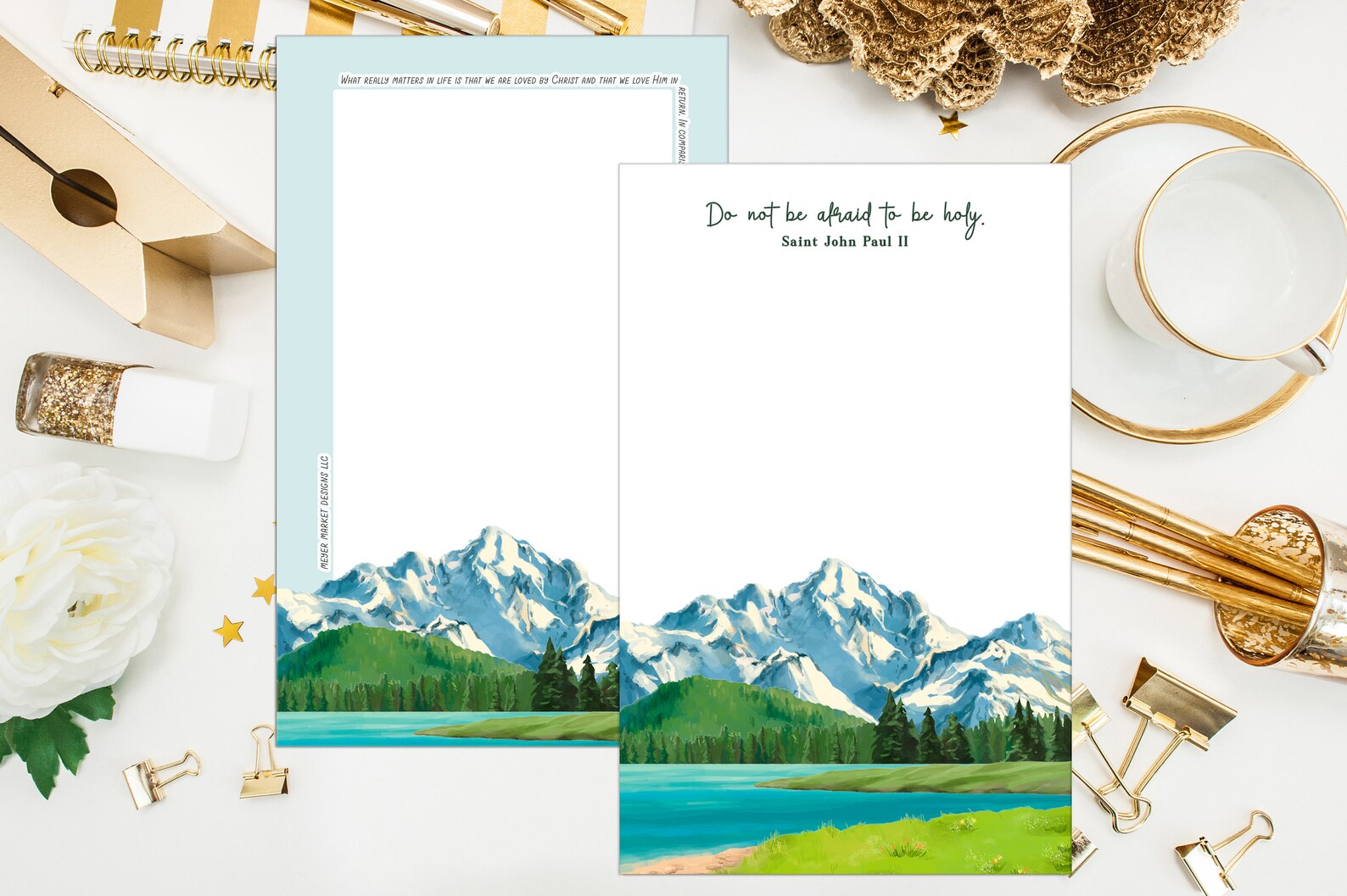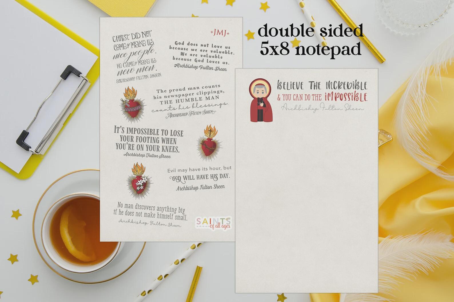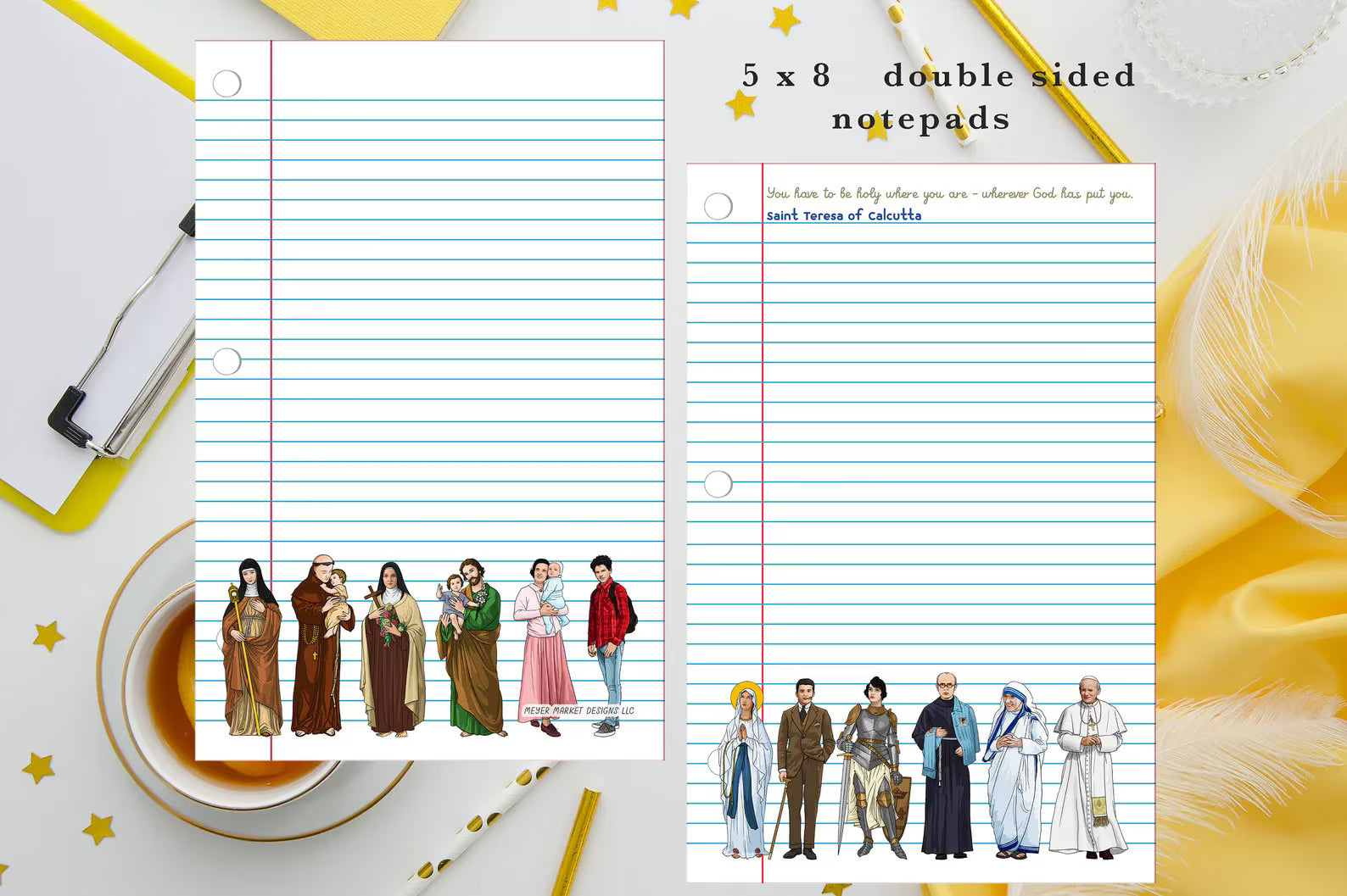 Set of 9 inspirational notepads. Frassati, Mother Teresa, JPII, Faustina, Divine Mercy, Fulton Sheen and Gianna notepads. Catholic Teacher