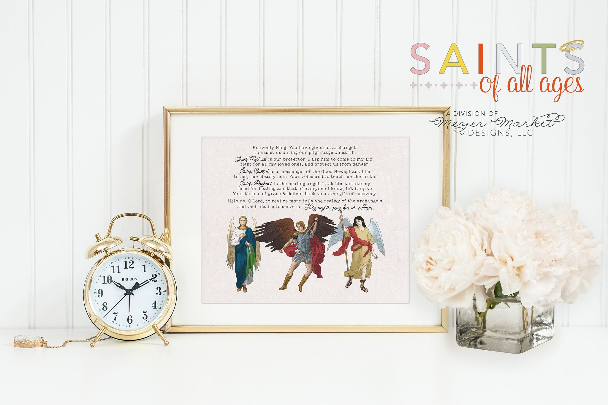 Archangel Michael, Raphael & Gabriel Prayer Print poster. St Michael Poster. Saint Gabriel Saint Raphael Kids Print. Archangel Prayer Poster