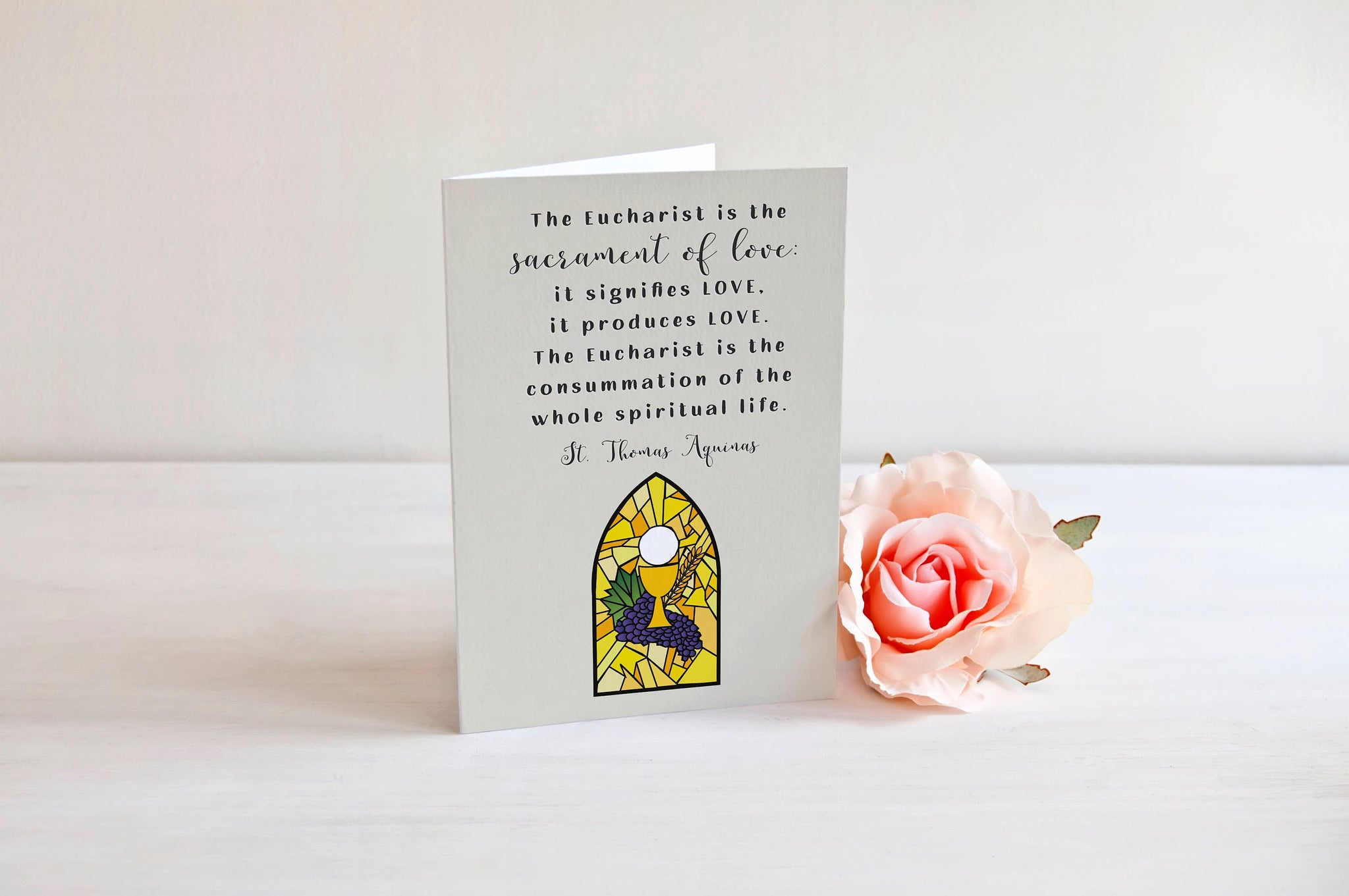Set of 5 First Holy Communion Folded Greeting Cards. Catholic gift. Communion. Saint Thomas Aquinas Eucharist card.